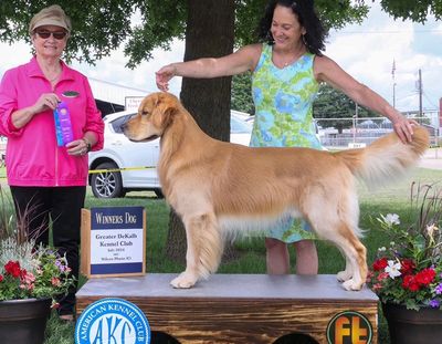 The American Kennel Club awards titles to dogs who have earned a certain number of points at obedience trials and hunt tests or at conformation shows. Both Dexter and Summer have many titled dogs in their pedigrees.